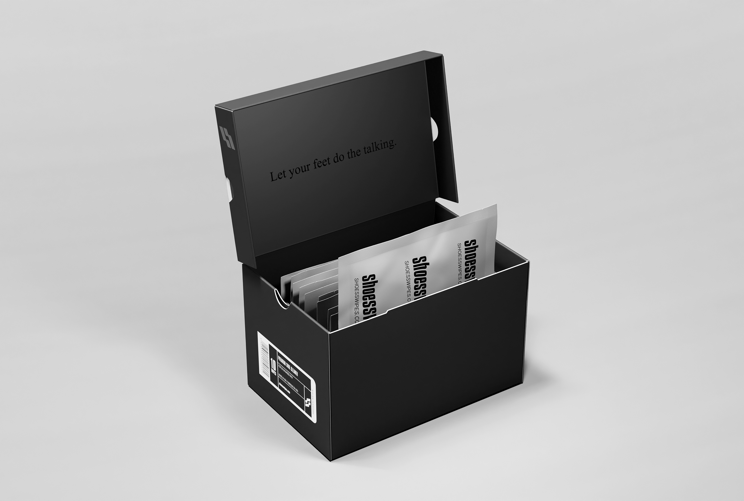 I worked with Shoesswipes to design a small shoe wipe box for their September 25th 2023 soft launch. Following their brand ethos, it was my job bring the box to life while also creating a 3D visualization for their store & social media.